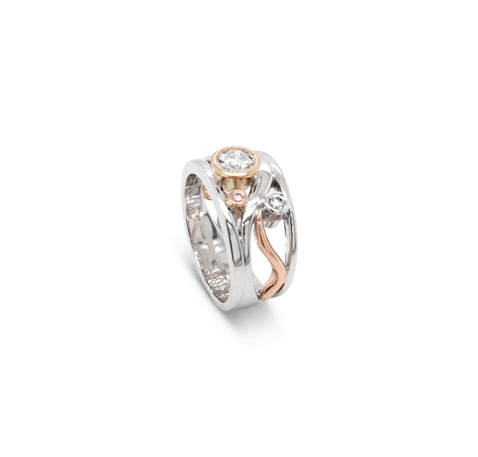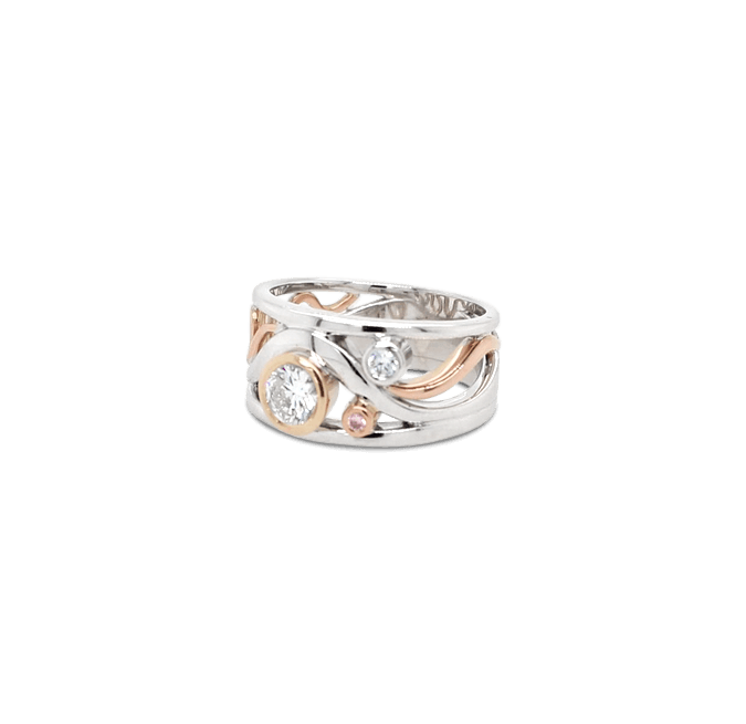 This ring reflects that harmony, combining a unique arrangement of white diamonds with a rare Pink Diamond from the Argyle Mine, capturing both our signature style and our ‘Freedom to Create’ spirit.