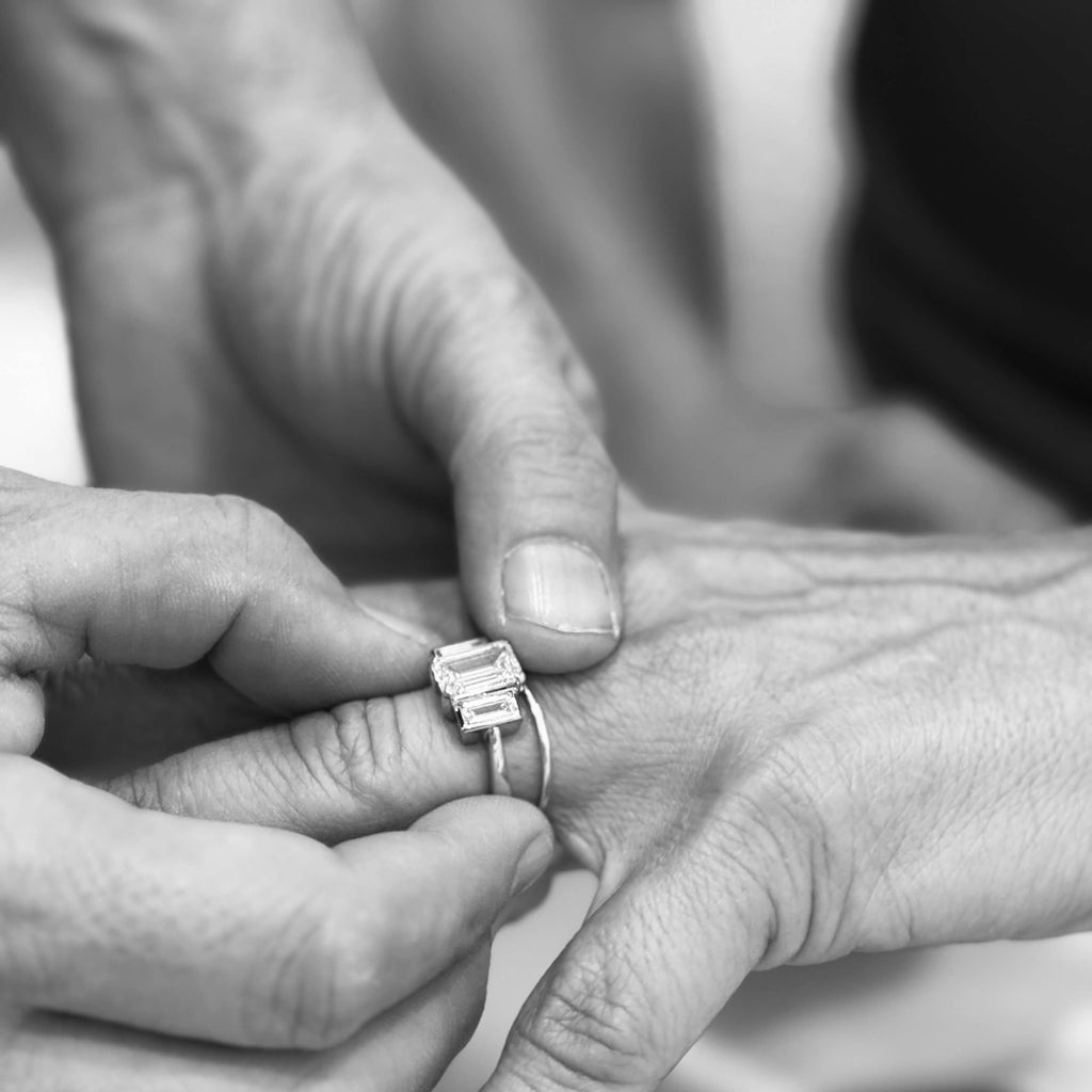 A ring 25 years in the making. For Yvonne, her bespoke trilogy ring represents the intertwining of past, present and future, a tribute to her family, her journey, and her mother’s memory. Crafted with deep care, her custom design captures the essence of a love story that spans time and place.