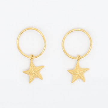 Introducing our enchanting Basile Starfish Hoop Earrings, each piece meticulously crafted to capture the natural beauty and texture of a starfish. Suspended gracefully from fine sleeper-style hoops, the starfish charms move gently with you, offering a touch of coastal elegance in every detail.