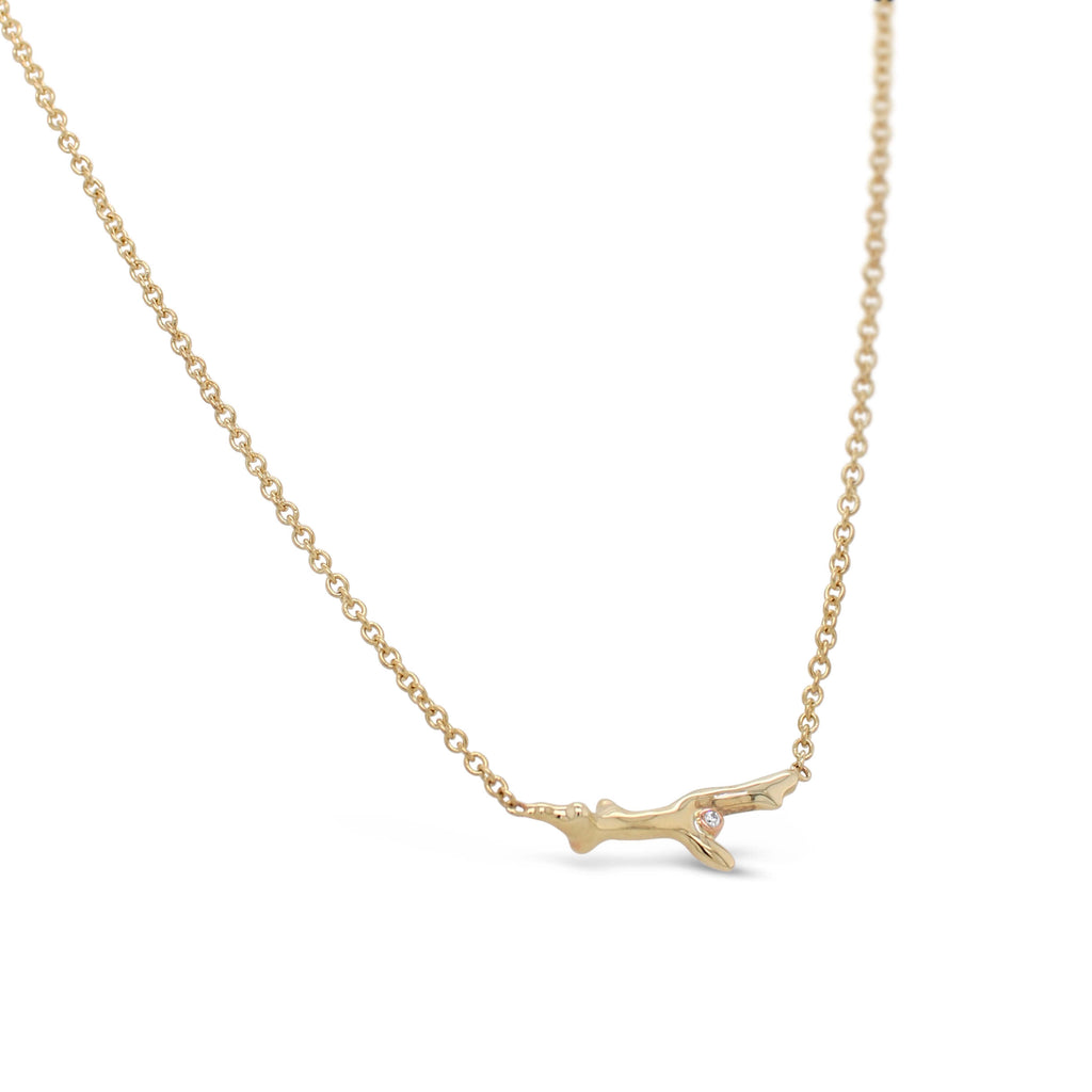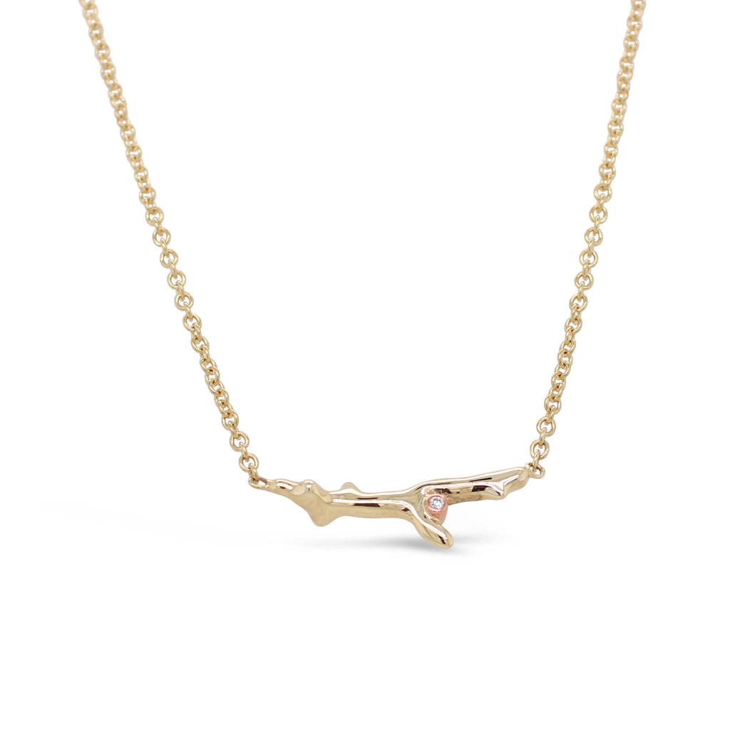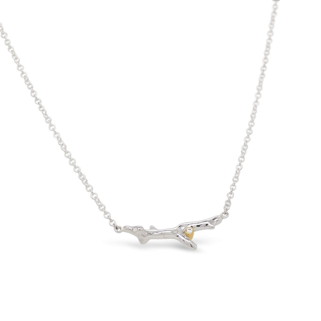 This pendant was crafted by casting a delicate piece of coral in metal, retaining all the lifelike details of its true form. To complement the beauty of the design, a delicate diamond was set into the piece. We love that this piece of jewellery holds a story from under the sea...