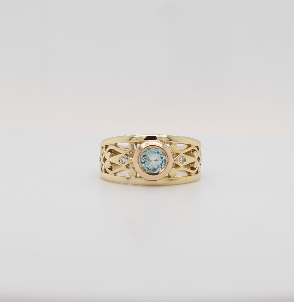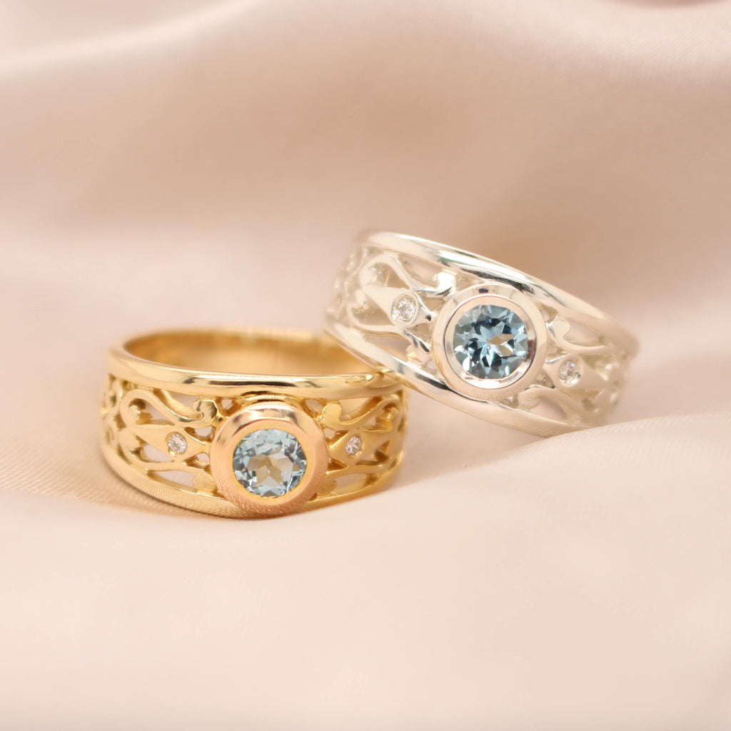 The intricate decorative pattern on this Filigree Pearl Ring adds a touch of romance to the design and enhances the beauty of the Aquamarine. The style of ring is an iconic jewellery piece that can be worn all day, everyday!