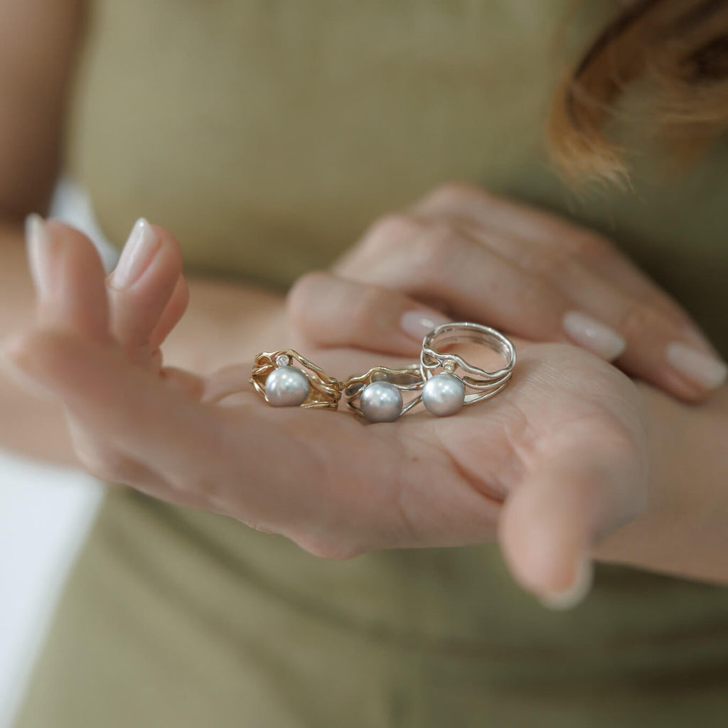 After cultivation and nurturing our Black Lip Oysters for up to 5 years, we harvest our pearls and only select the best quality and grade for our jewellery showroom in Geraldton, WA. Each pearl is carefully hand selected by Founder and Pearl Farmer, Pia Boschetti. She will perfectly pair an Australian Abrolhos Island Black Pearl to compliment to the organic coastal contours of this wavy band. Your jewellery piece is then finished off by our expert jewellers in our on-site workshop to ensure it may be treasured for generations to come.