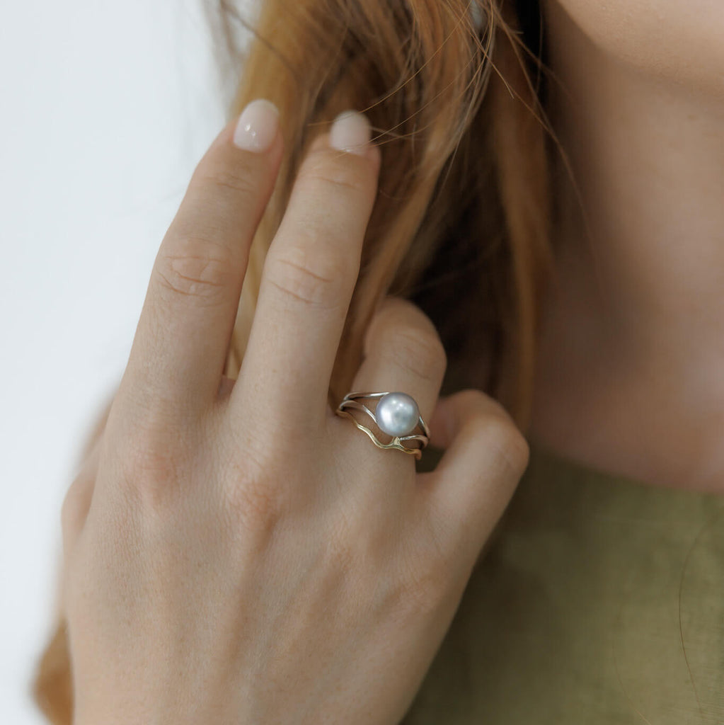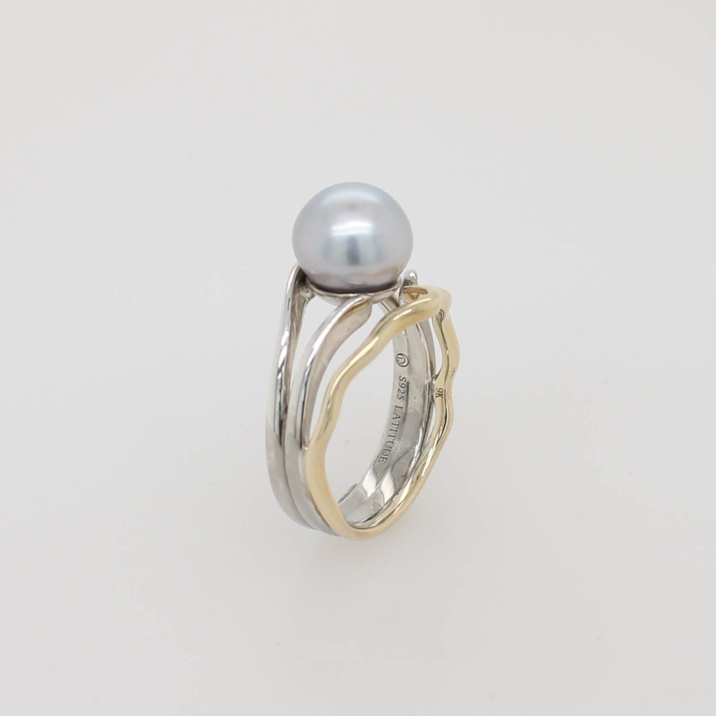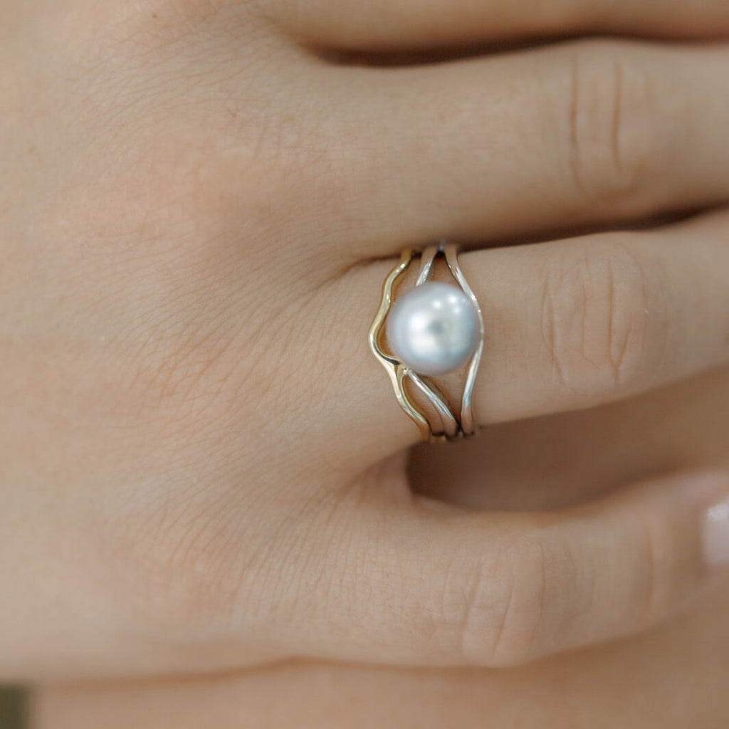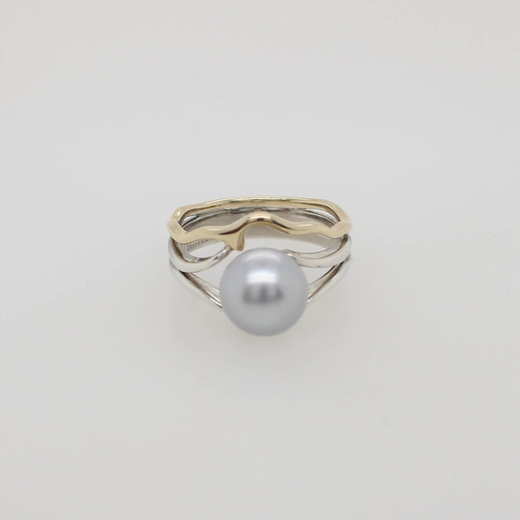 This Wave Ring from our Island Bound Collection was inspired by curls and swirls of our coast lines at the Abrolhos Islands - our Island Home and location of our Pearl Farm. The contours of the band and the contrast of the metals make for casual or formal wear - comfortable enough to wear all day, everyday.