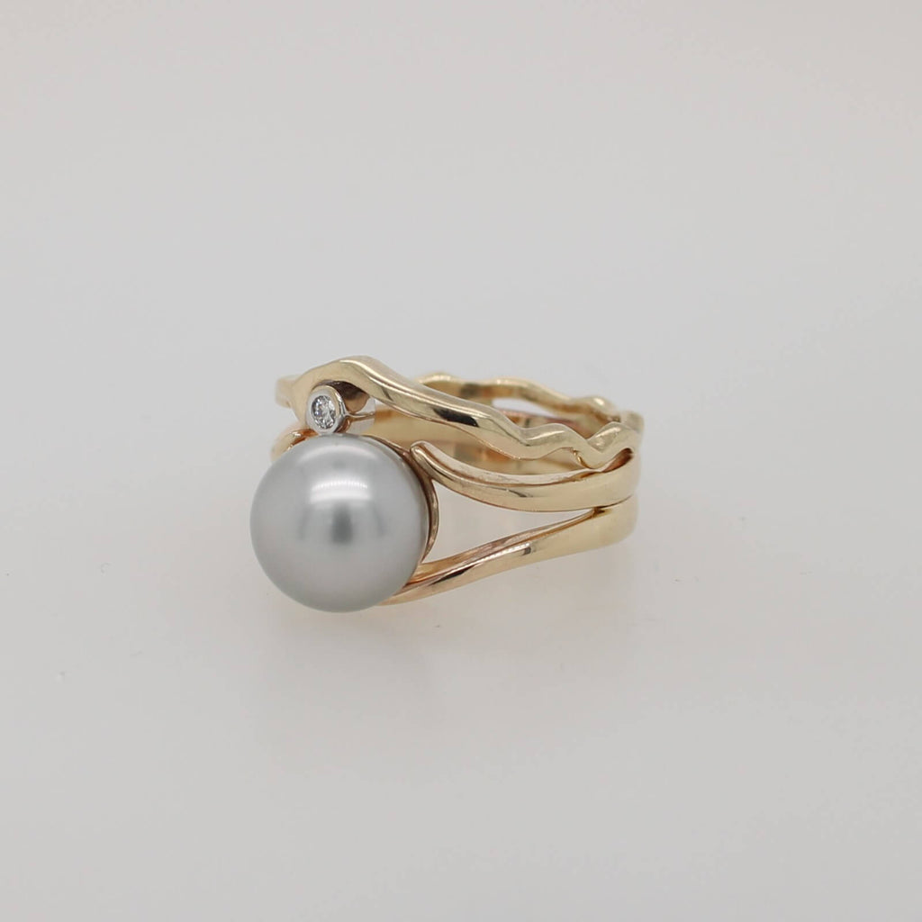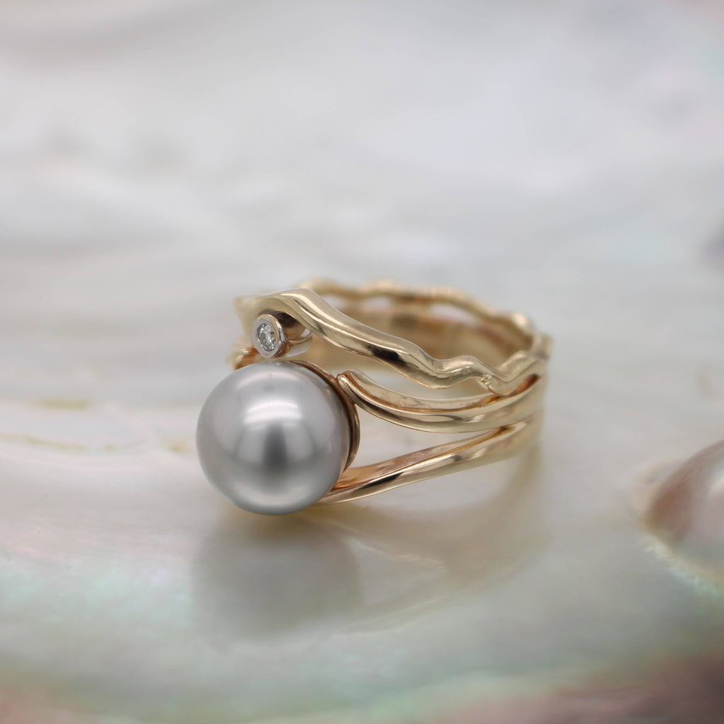Island Bound Wave Ring with Pearl and Diamond