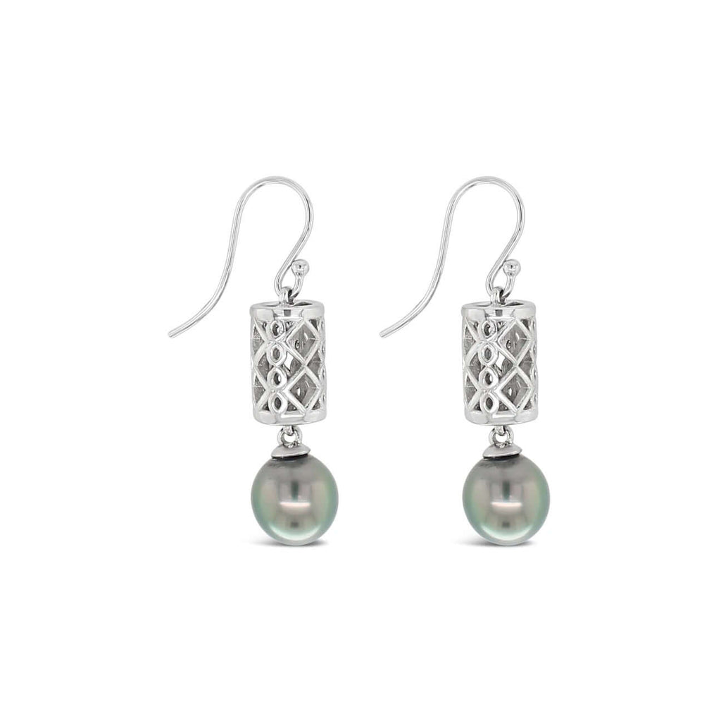 Take a journey to another world with these Moroccan-inspired earrings. Pia designed the Moroccan Collection, drawing inspiration from her many travels abroad. The repetitive geometric patterns are in perfect harmony with our home-grown Abrolhos Island Black Pearls. These modern and elegant earrings are paired with two of our home-grown Abrolhos Black Pearls from the Abrolhos Islands. Available in 9ct Yellow Gold and 9ct White Gold.