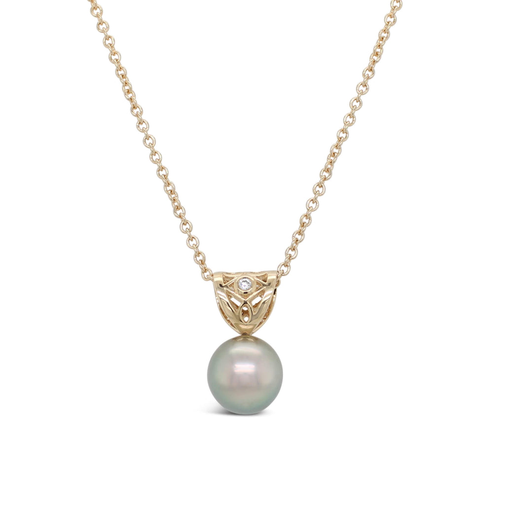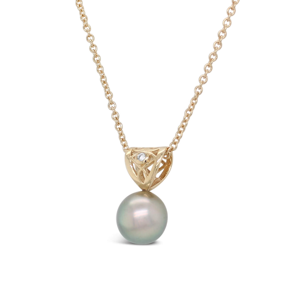 Gold Moroccan Pendant with Black Pearl and Diamond