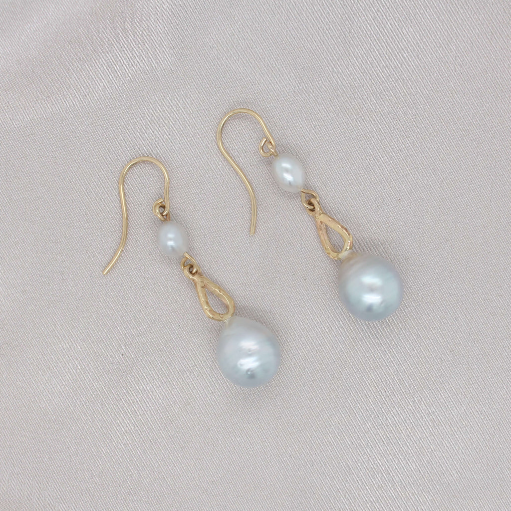These earrings, embellished with organic Keshi and Baroque Pearls from our very own Latitude Pearl Farm at the Abrolhos Islands, WA, offer a touch of sophistication for both daytime and nighttime elegance.