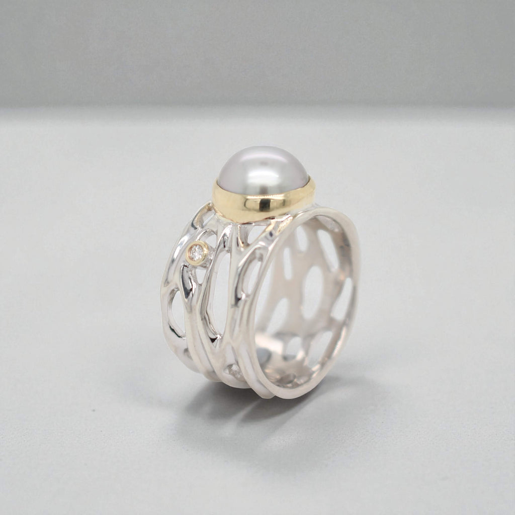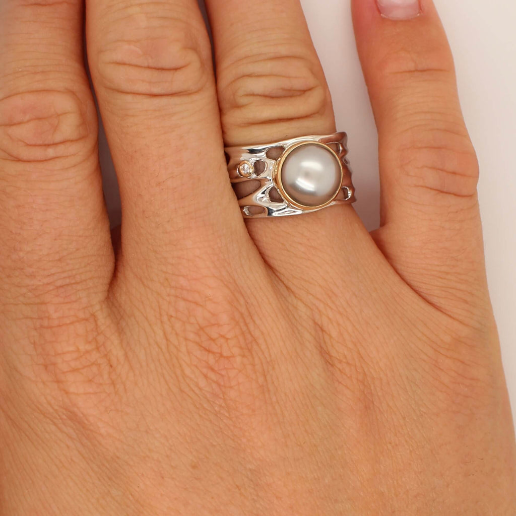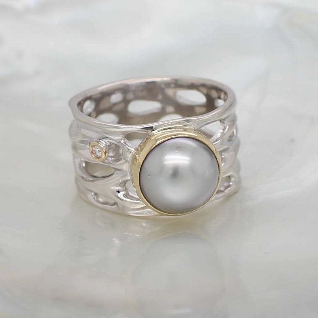 The combination of the Black Pearl and Diamond creates a harmonious blend of elegance and luxury, making this ring a versatile and timeless addition to your jewellery collection. Embrace the tranquility of the Oily Calm Collection and experience the serenity of nature's beauty in every wearing. The mixed-metal look fantastic and give you a unique, modern look. With no limitations to wearing either rose gold or silver, the mix of metals add a touch of class and edginess to your overall look.
