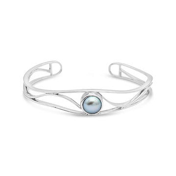 Open Lexi Cuff Silver Bangle featuring Black Pearl