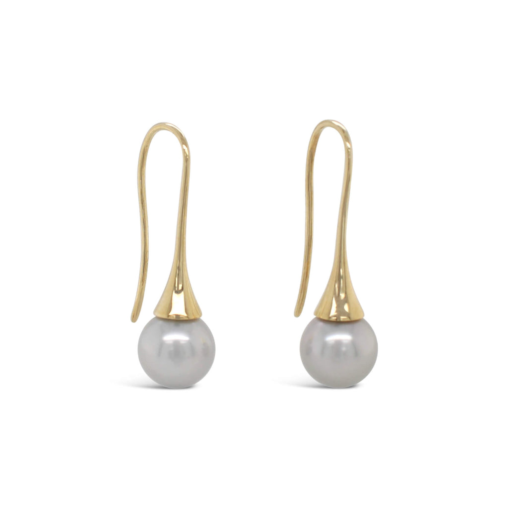Contemporary, beautiful and forever classic these Fluted Shepherd Hook Earrings feature a pair of our home-grown Australian Abrolhos Island Black Pearls, known for their rare pastel grey lustre, made in 9ct Yellow Gold or Sterling Silver.