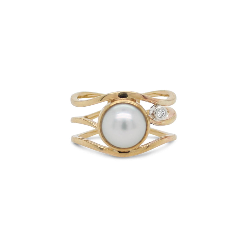 Oh my Lexi! This 9ct Yellow Gold open "Slim" Lexi ring features a white South Sea Pearl and a 0.02ct White Diamond bezel set in 9ct White Gold.