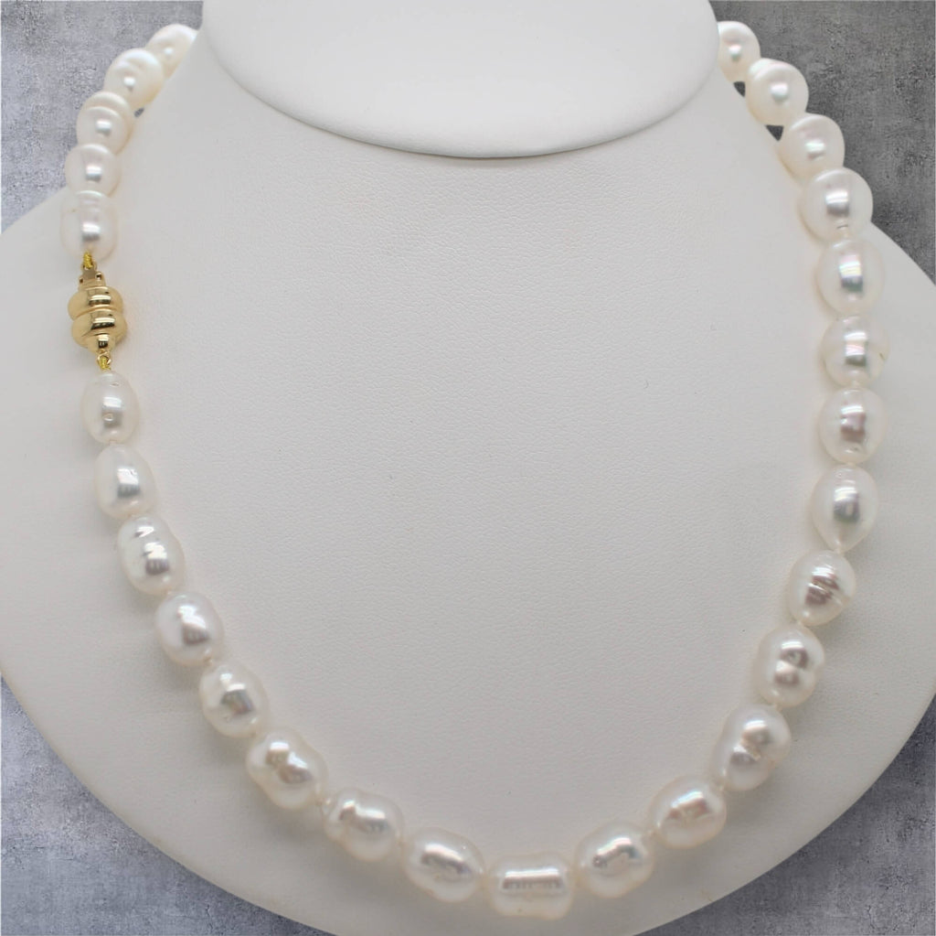 Australian South Sea Pearl Strand featuring 35 x 8-10mm circle pearls (Grade 3) and an 18ct Yellow Gold clasp. Total length of strand is 43c including clasp