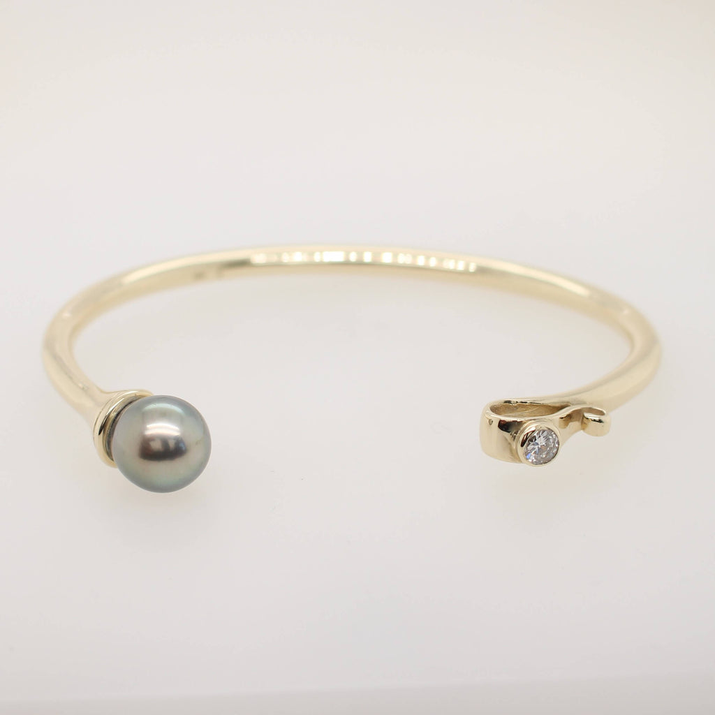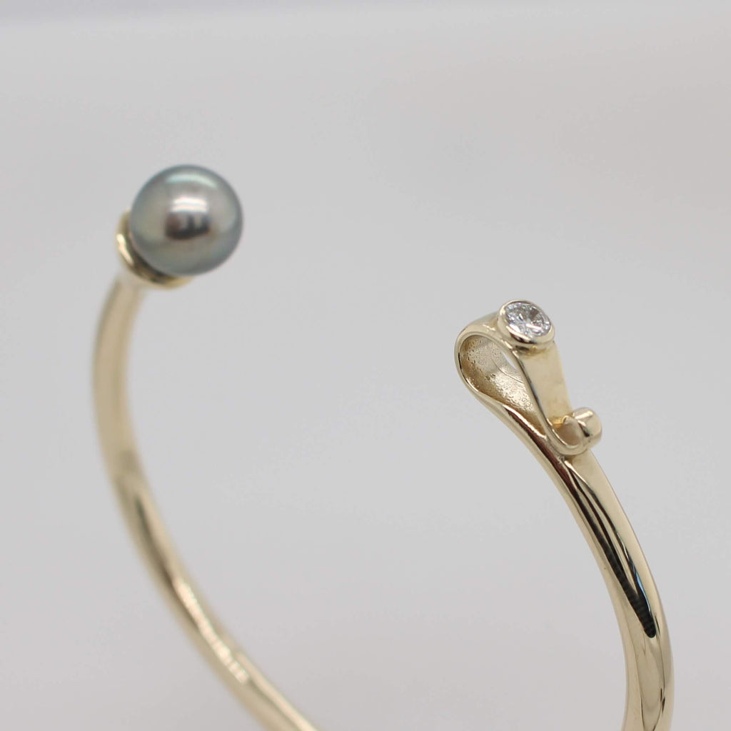 Yellow Gold Goddess Cuff with Abrolhos Pearl and Diamond