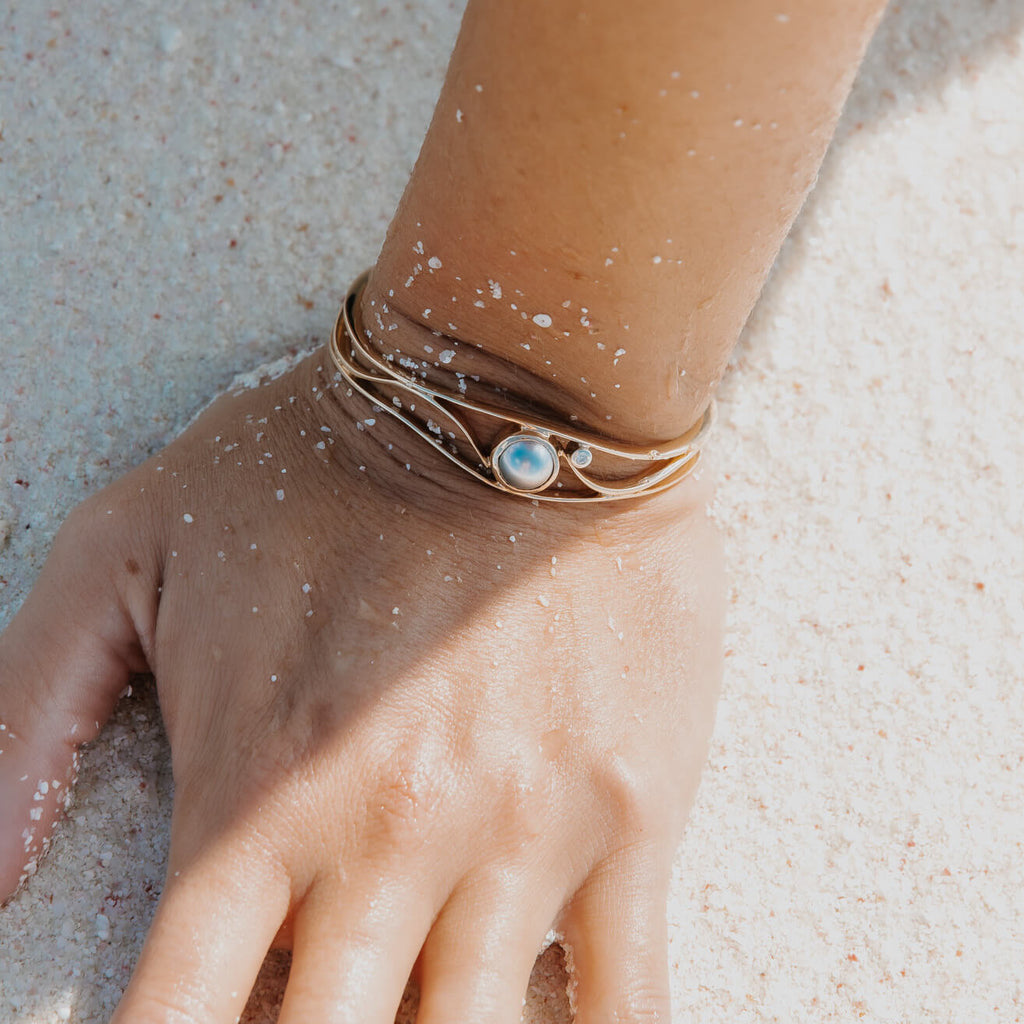 The Lexi Cuff features a gorgeous Black Pearl from our very own Latitude Pearl Farm. Located 70km off Geraldton's coast lies our 'Island Home', The Abrolhos Islands, where we farm our Abrolhos Island Black Pearls.
