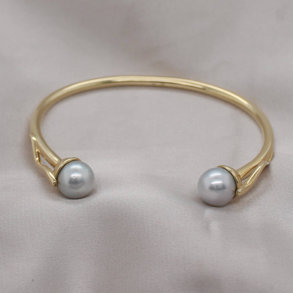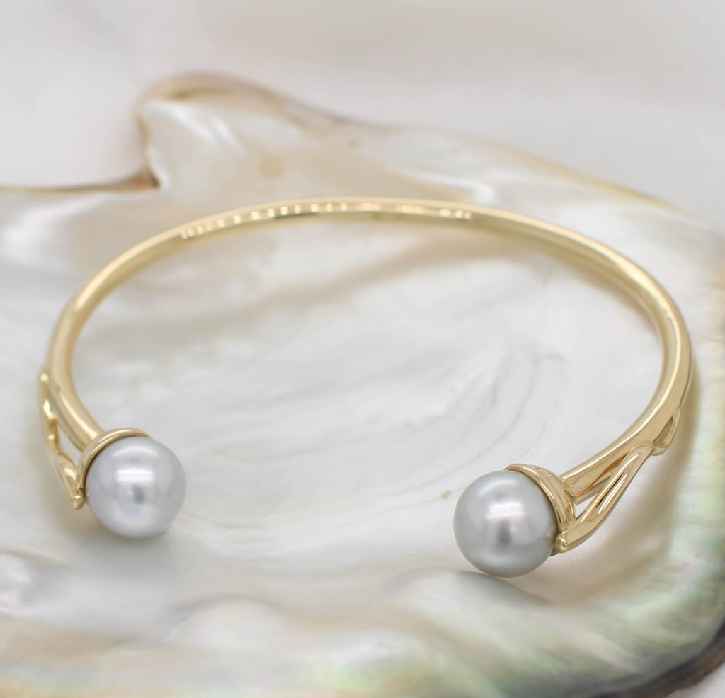 The Pia Cuff, available in gold and silver variations, has become one of our most beloved designs. Handcrafted with two timeless 8.5mm Australian Abrolhos Island Black Pearls, it is an epitome of elegance and sophistication. Pia Boschetti, the visionary behind our company, designed this cuff to be not only aesthetically captivating but also a cherished family heirloom that transcends generations.